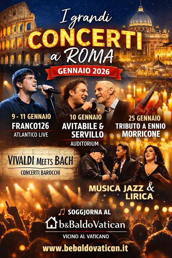 Se stai programmando un viaggio per assistere a uno o più concerti, ti aspettiamo al b&Baldo Vatican, a due passi dal Vaticano e ben collegato con metro e autobus.